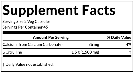 NOW Foods furnizează 1,5 g L-citrulină per porție, un prag practic și eficient pentru rutina zilnică. Prezența calciului (36 mg, 3%) completează formula.