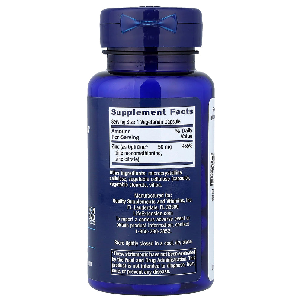 Zinc Caps, OptiZinc® 50 mg, Life Extension oferă astfel: