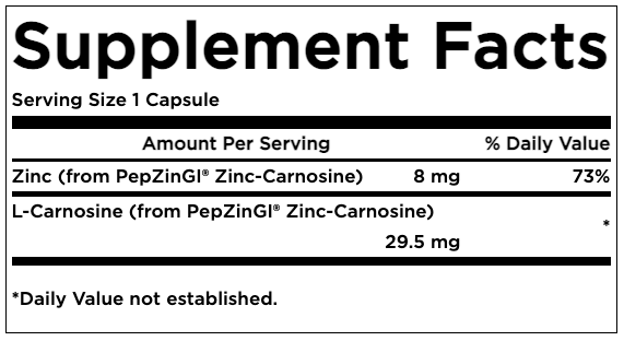 Zinc Carnosine PepZin GI este un complex de minerale zinc si L-carnozina, legate impreuna pentru a oferi beneficii unice. Procesul de chelare brevetat folosit pentru a produce PepZin GI ofera un sprijin de lunga durata pentru o functie gastrica sanatoasa. Promoveaza secretiile sanatoase de mucus din celulele stomacului si ajuta la mentinerea unui echilibru bacterian benefic in tractul gastro-intestinal.